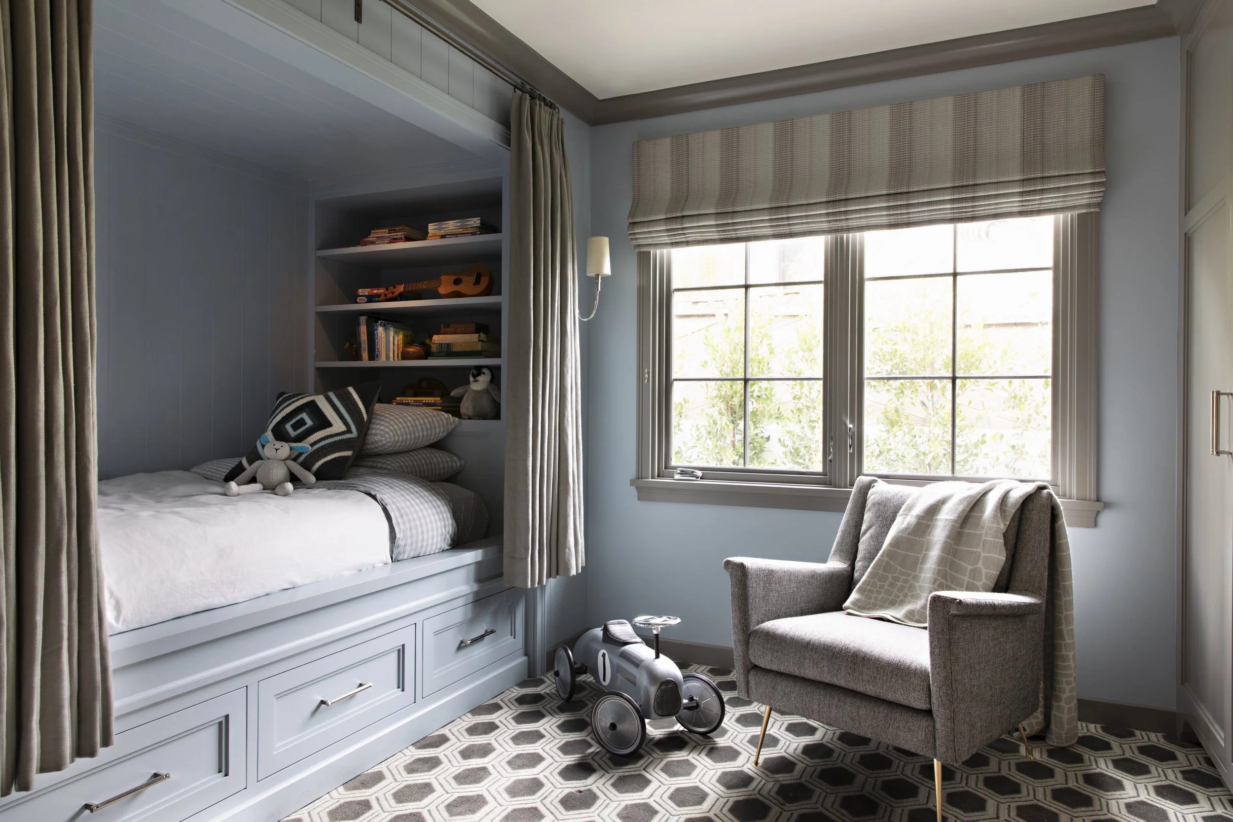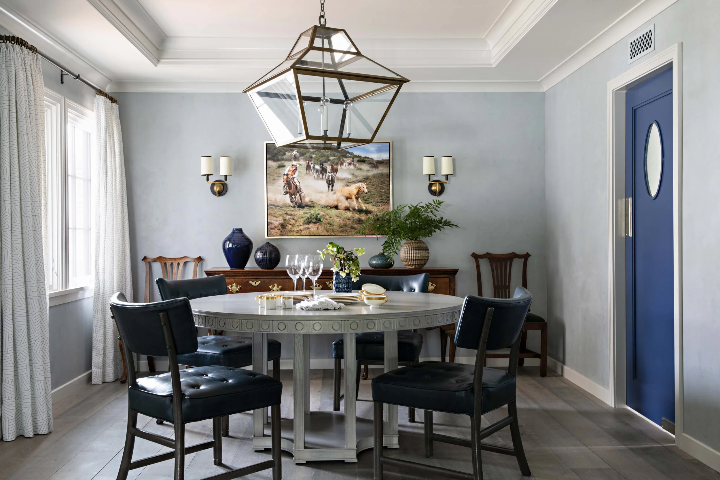 “To create a sense of unity throughout the house, Parrish Cameron Robe treated it as one space. “The colors needed to flow into each other, from one room to the next.” Blues and grays start in the entry and run through all the main living areas.”